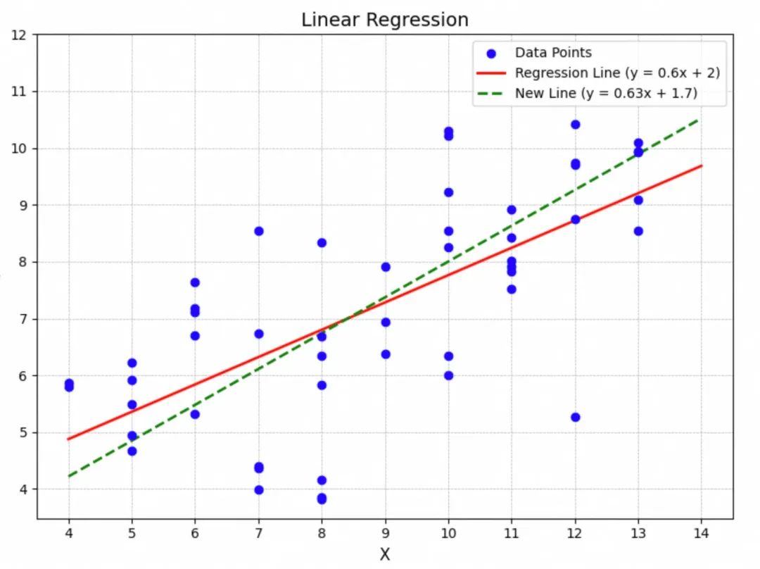 线性回归根据现有的特征数据集,通过不断调整模型中的参数,拟合出一条最贴近数据分布趋势的直线,从而用于预测目标变量(标签)的数值。