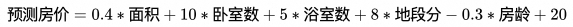 也许经过复杂学习与训练后房价预测模型可以写成: