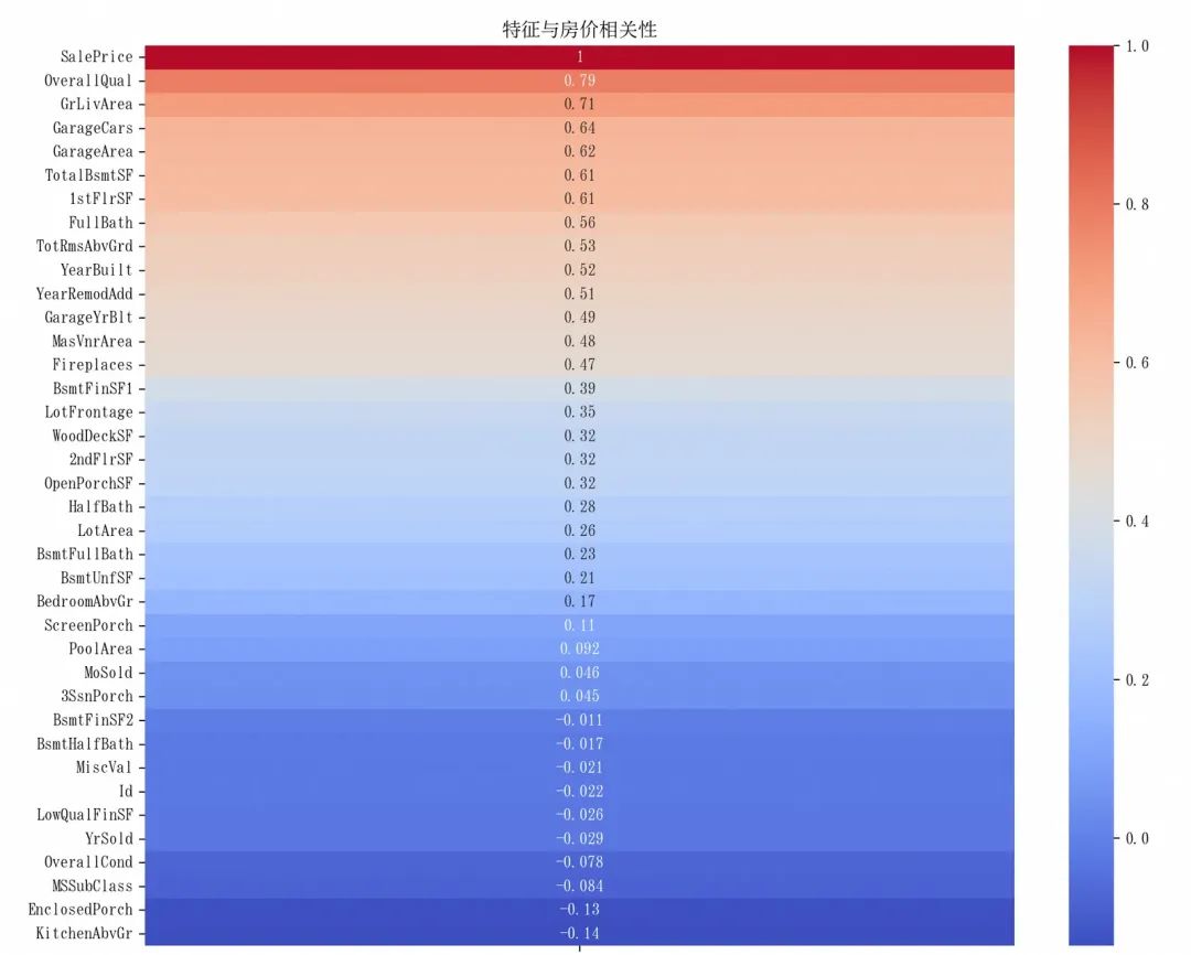1 2 3 4 5 6 7 8 9 10 11 12 13 from sklearn.model_selection import train_test_splitX = train.drop(['SalePrice' , 'Id' ], axis=1 ) y = train['SalePrice' ] X_train, X_val, y_train, y_val = train_test_split( X, y, test_size=0.2 , random_state=42 ) print (f'训练集大小: {X_train.shape} ' )print (f'验证集大小: {X_val.shape} ' )