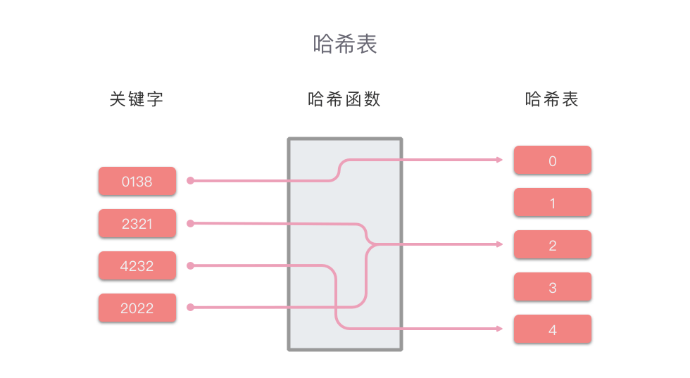 key」和「映射函数Hash(key)」计算出对应的「值value」,把关键码值映射到表中一个位置来访问记录,以加快查找的速度。这个映射函数叫做「哈希函数(散列函数)」,存放记录的数组叫做「哈希表(散列表)」。