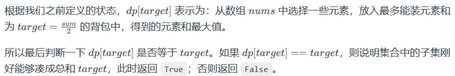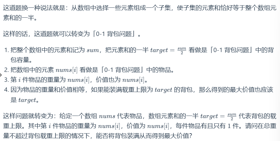 要求:判断是否可以将这个数组分成两个子集,使得两个子集的元素和相等。