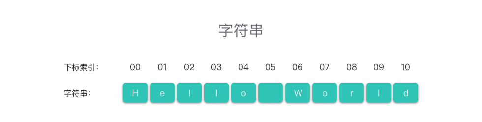 在示例代码中,str 是一个字符串的变量名称,Hello World 则是该字符串的值,字符串的长度为 11。该字符串的表示如下图所示: