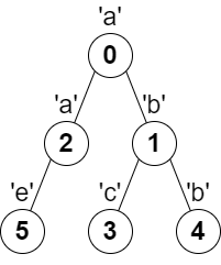 1 | 输入:parent = [-1,0,0,1,1,2], s = "abacbe" |