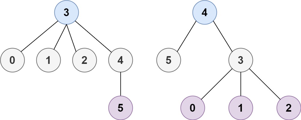 1 | 输入:n = 6, edges = [[3,0],[3,1],[3,2],[3,4],[5,4]] |