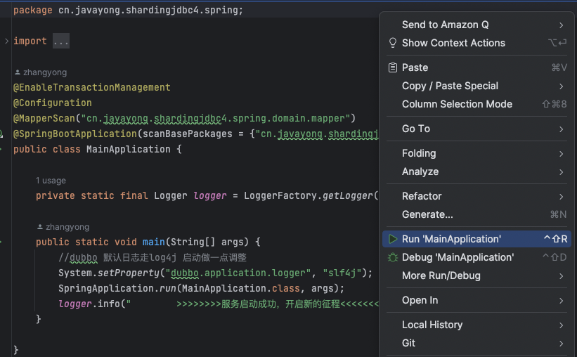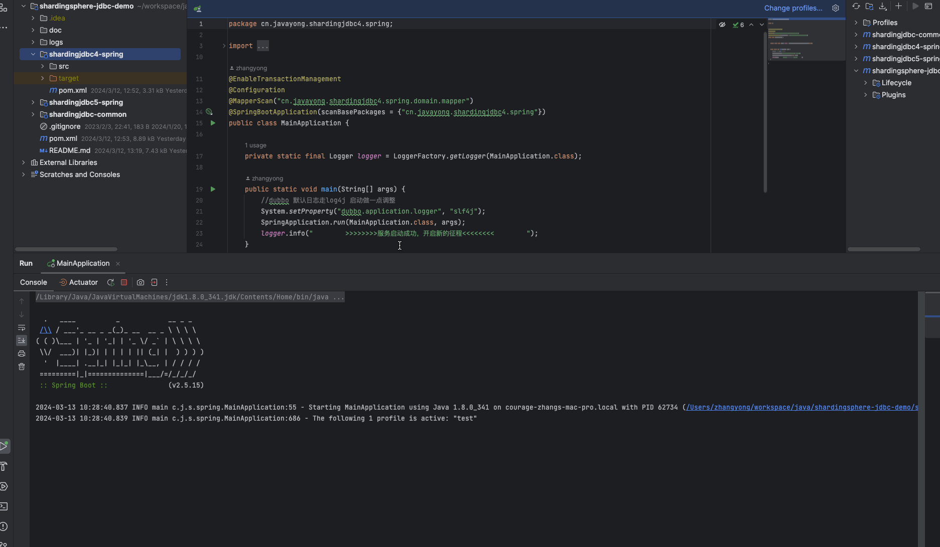 启动过程中,会打印 shardingsphere jdbc 日志 。