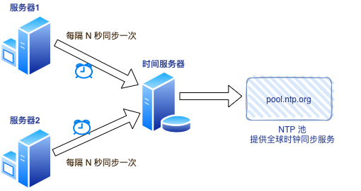 通过时间校准让客户端和服务器之间进行时钟同步,提供高精准度的时间校正,NTP服务器从权威时钟源(例如原子钟、GPS)接收精确的协调世界时UTC,因为NTP Pool是绝大多数主流 Linux 发行版和许多网络设备的默认“时间服务器”。