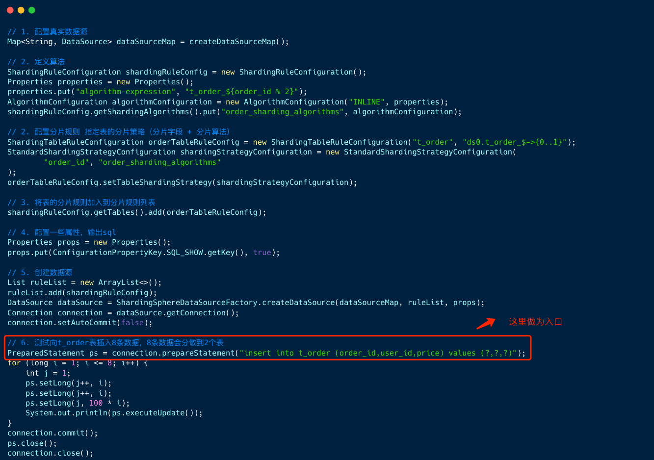 我们从 shardingsphere jdbc 的例子入手 , 来串联解析流程。