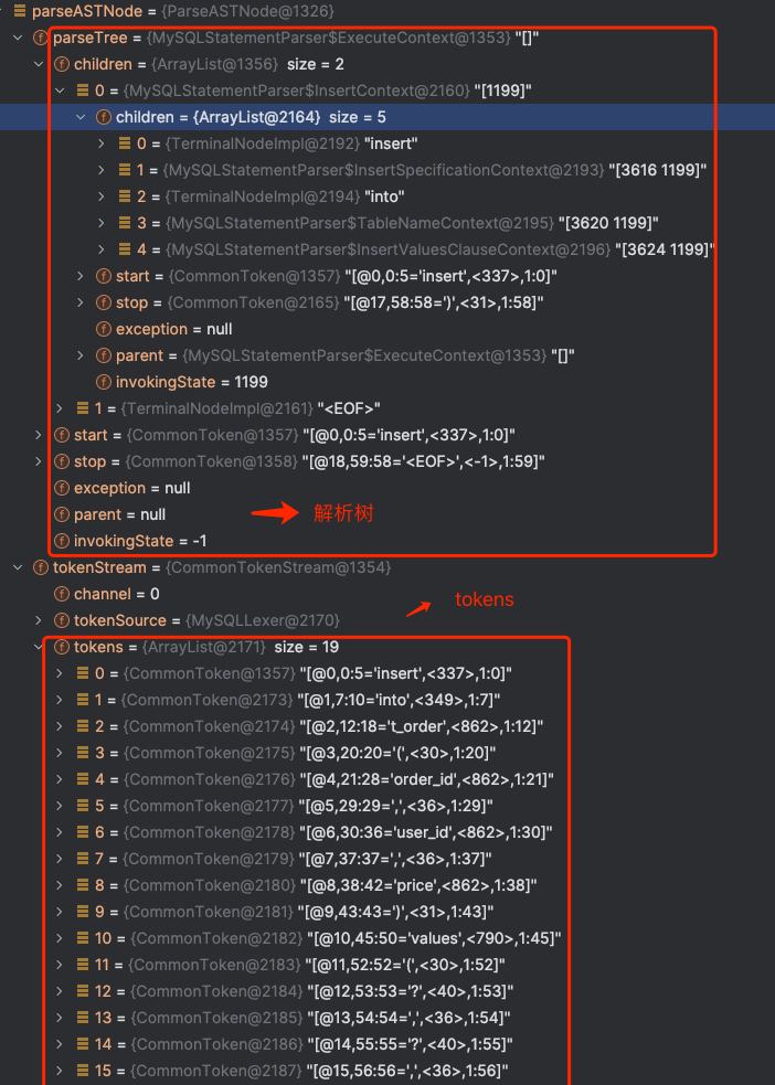 - 词法解析器用于将 SQL 拆解为不可再分的原子符号,称为 Token,并根据不同数据库方言所提供的字典,将其归类为关键字,表达式,字面量和操作符。
