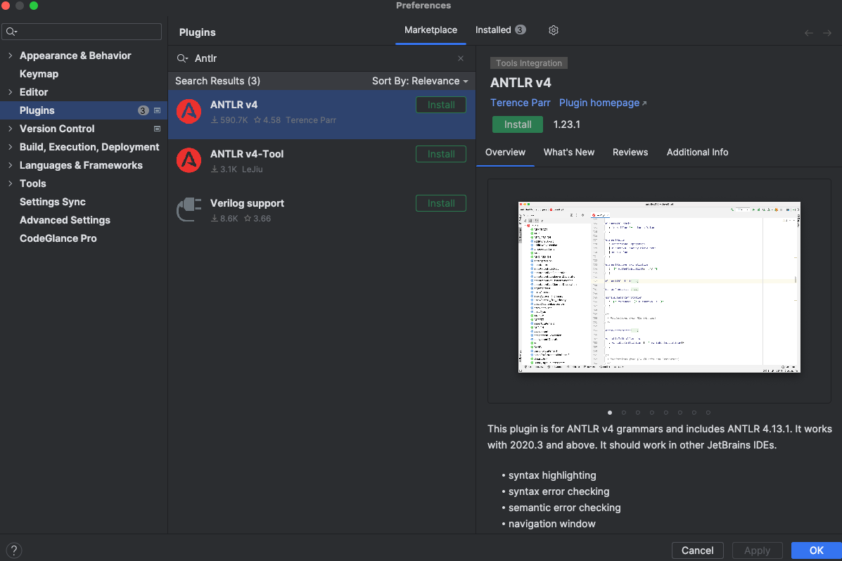 我们也可以安装 IDEA ANTLR 插件来验证,下图:
