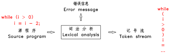 词法分析此阶段从左向右扫描源文件,将其字符流分割成一个个的词( token ) 。