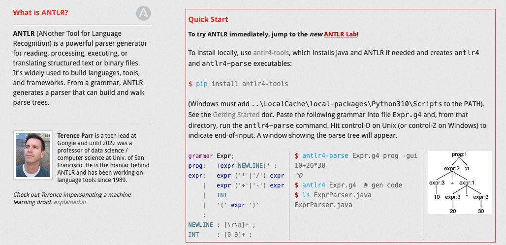 ANTLR 被广泛应用于学术及工业领域,是众多语言、工具及框架的基石。Hive、ShardingSphere 使用 ANTLR 实现 SQL 的词法和语法解析,Hibernate 框架使用 ANTLR 来处理 HQL 语言。