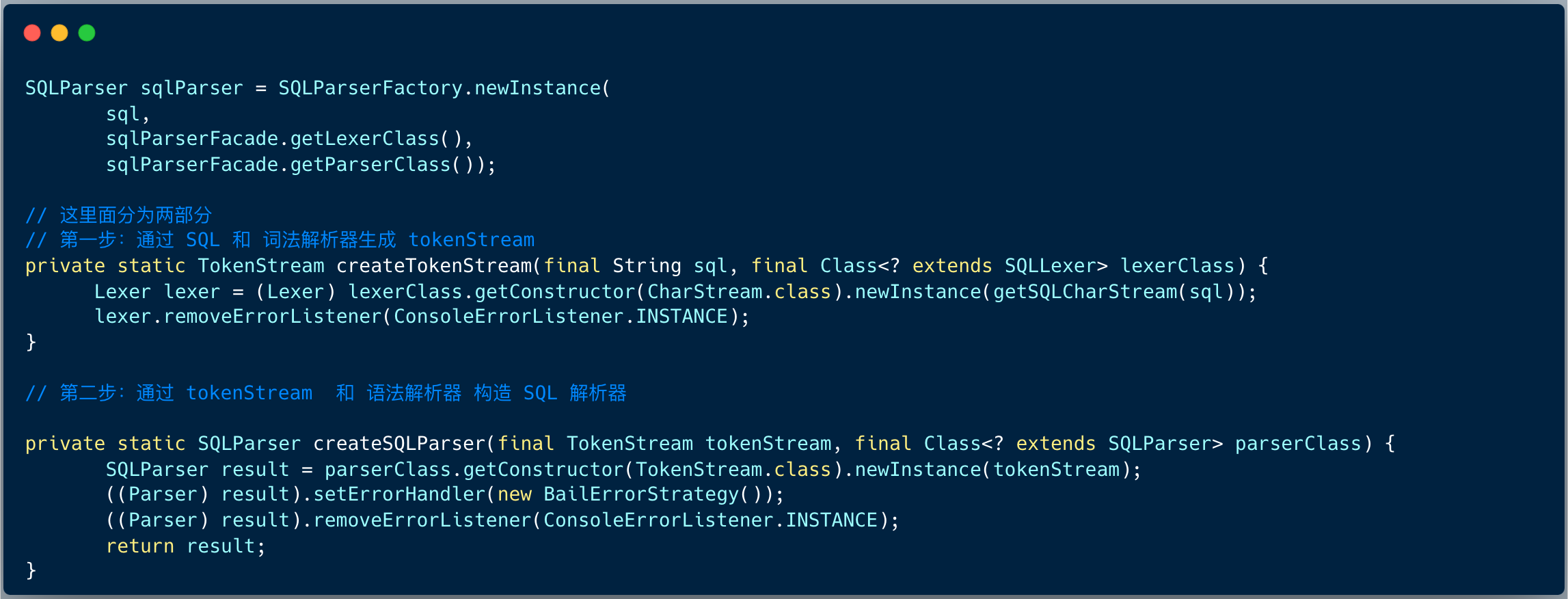 - 过 tokenStream 和 语法解析器 构造 SQL 解析器