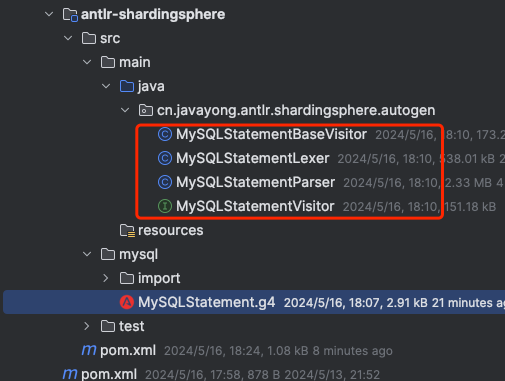 shardingsphere 的 antlr4 描述文件,笔者已经放到开源项目模块里,大家有兴趣的话,可以去查看下。