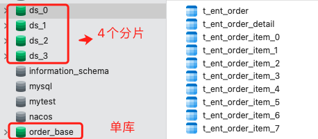单订单库迁移到 4 个数据库分片,订单条目表在每个数据库分片拆分成 8 个分表。