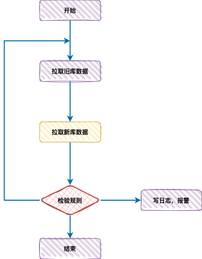 - 差异数据进行二次、三次校验(由于并发和数据延迟存在),三次校验都不同则报警。