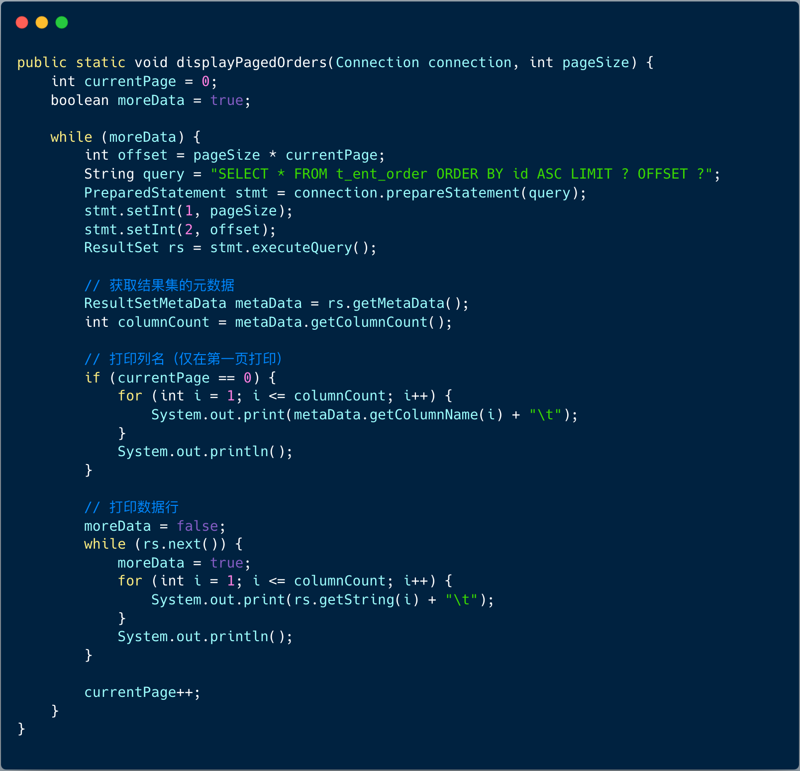 使用游标模式进行数据库查询,编程模型非常简单,可以有效地处理大量数据而不会一次性将所有数据加载到内存中,非常适合大数据量查询。
