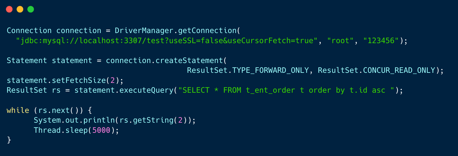 - 在连接参数中需要拼接 useCursorFetch=true;