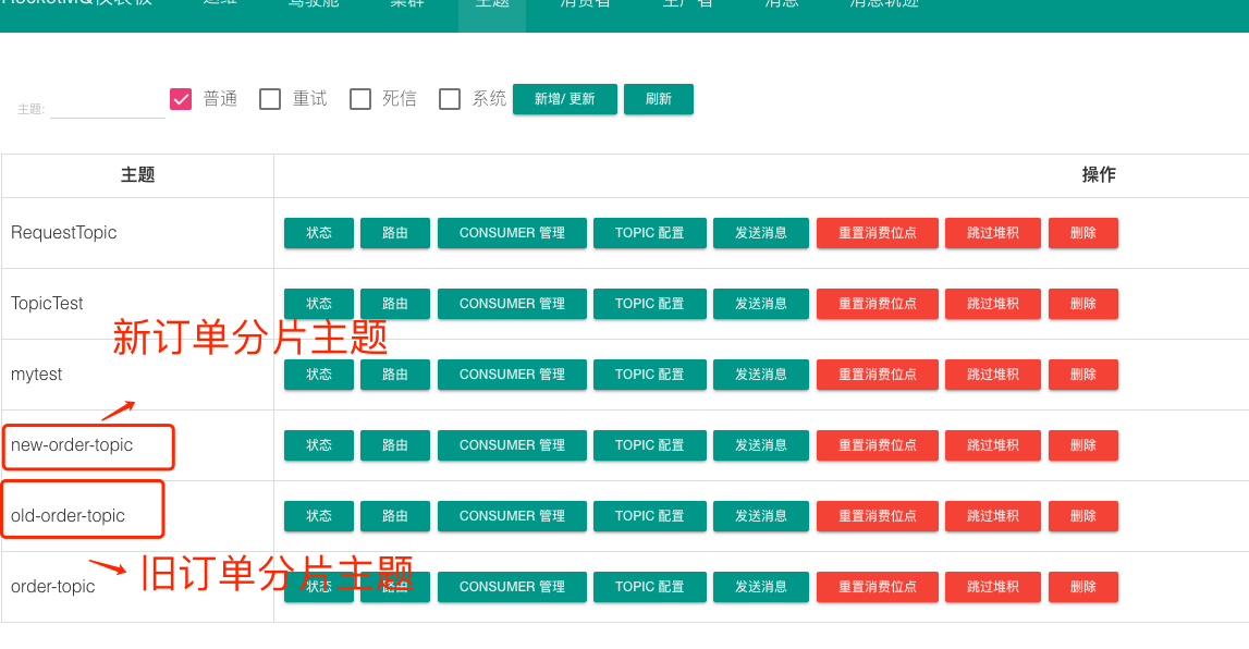 同时通过 RocketMQ DashBoard 创建两个主题: