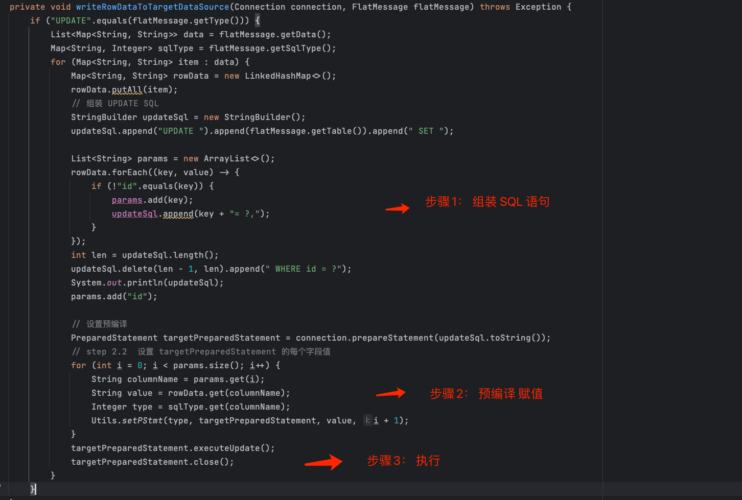 - 步骤 1 :组装 SQL 语句 ;