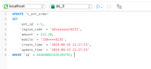 首先在订单分片 ds3 执行如下 SQL 。