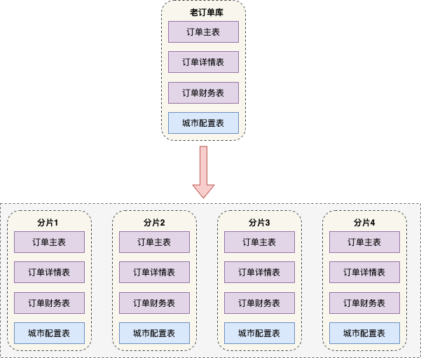 如图,新订单每个分片都包含城市配置表,这样就可以方便的进行关联。