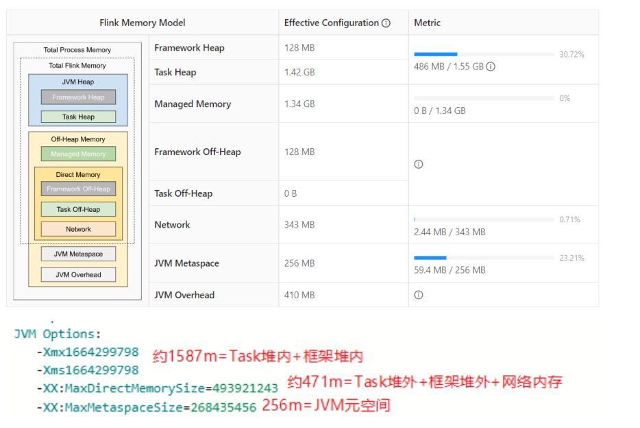 堆外:taskmanager.memory.task.off-heap.size,默认 0,表示不使用堆外内存