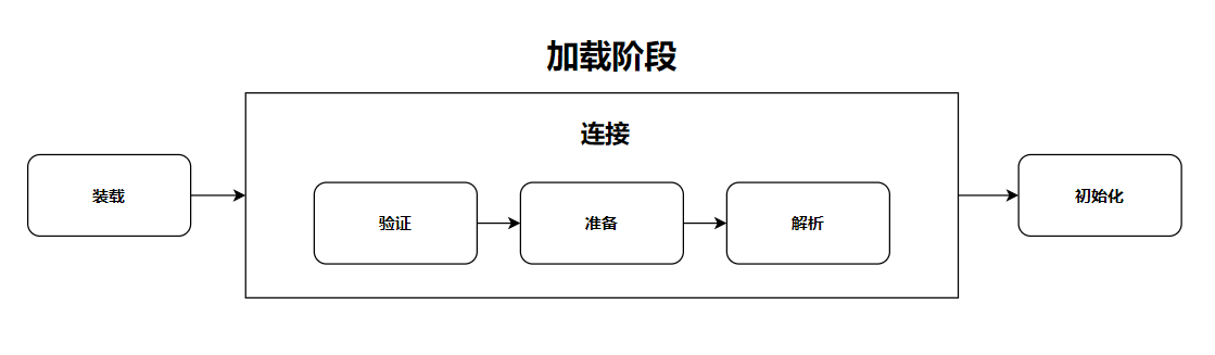 加载阶段就是「将编译后的class文件加载到JVM中」。在加载阶段又可以细为【装载】【连接】【初始化】三个步骤。