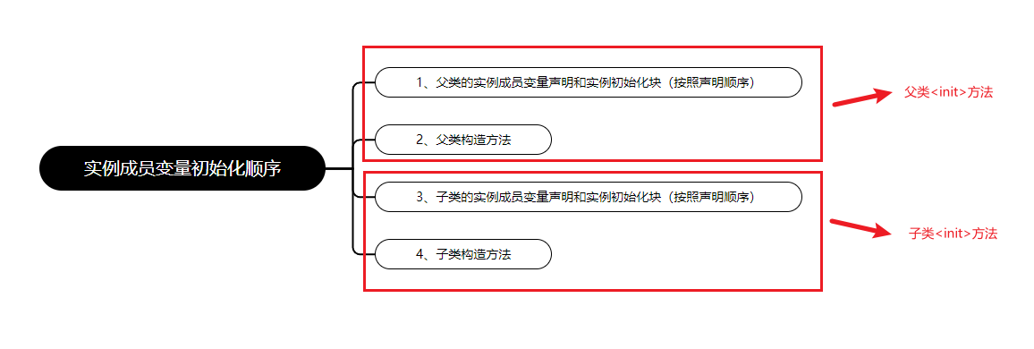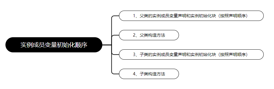 - init方法先为实例变量分配内存空间,再执行赋默认值,然后根据源码中的顺序执行赋初值或代码块。
