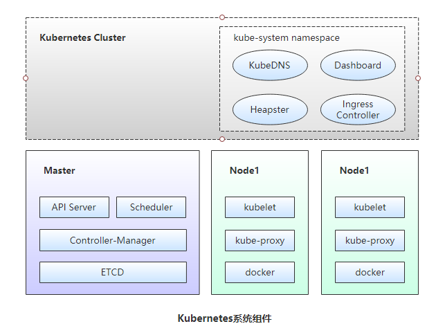 Kubernetes的集群控制平面由多个组件组成,这些组件可统一运行于单一Master节点,也可以以多副本的方式同时运行于多个节点,以为Master提供高可用功能,甚至还可以运行于Kubernetes集群自身之上。Master主要包括以下几个组件。