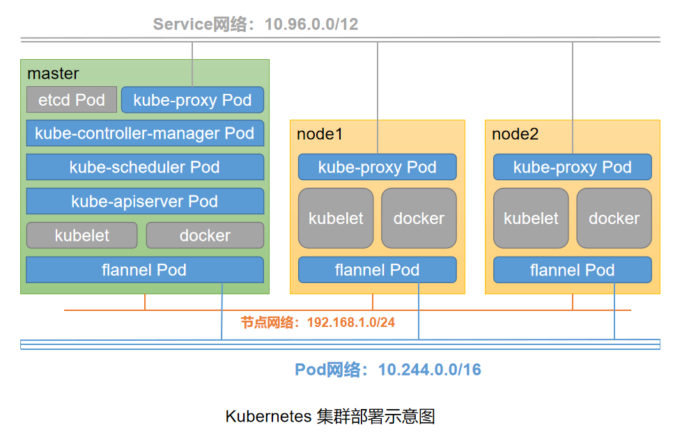 [root@k8s-master ~]# kubectl get nodes NAME STATUS ROLES AGE VERSION k8s-master Ready master 9m40s v1.15.2 k8s-node1 NotReady <none> 28s v1.15.2 k8s-node2 NotReady <none> 13s v1.15.2