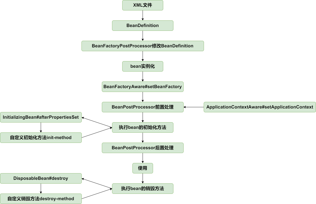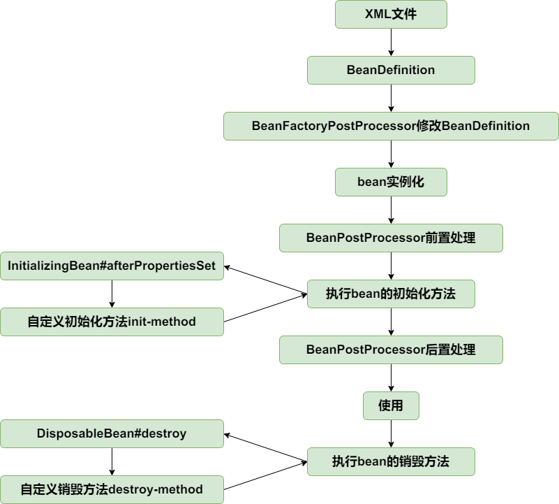 1 2 3 4 5 6 7 8 9 public interface InitializingBean { void afterPropertiesSet() throws Exception; } public interface DisposableBean { void destroy() throws Exception; }