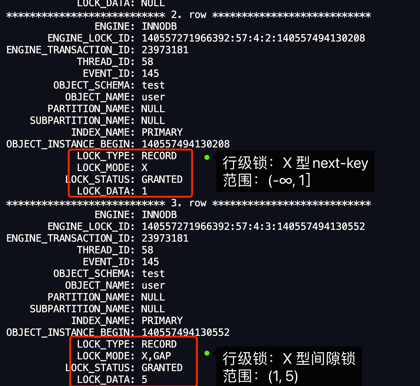 X,说明是 next-key 锁; - 如果 LOCK_MODE 为