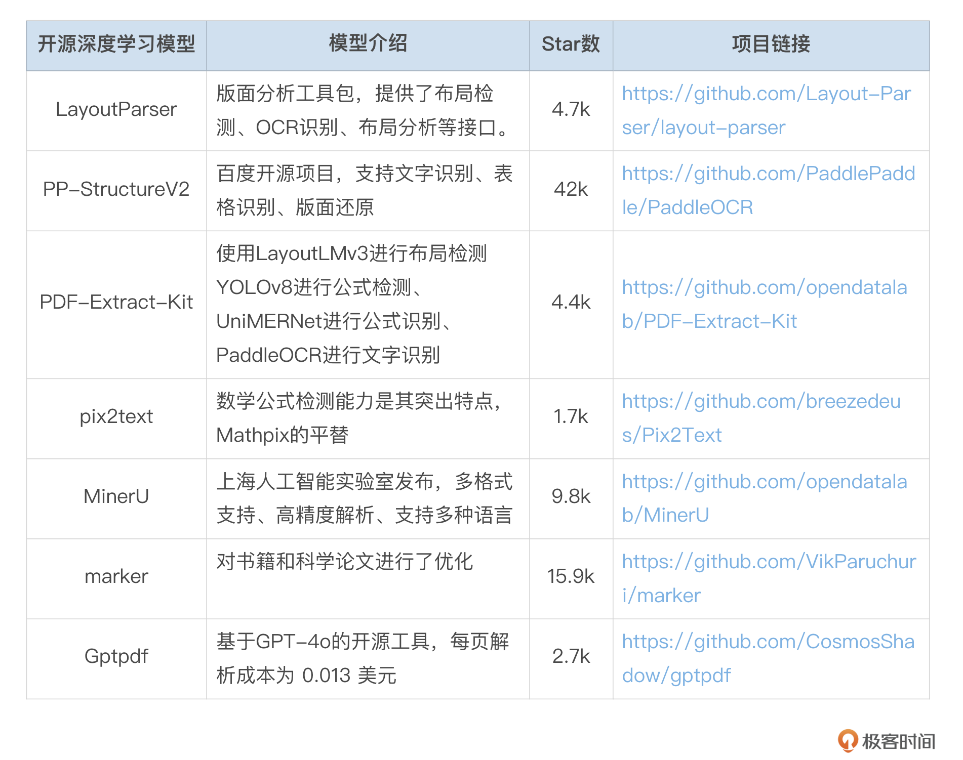 然而,由于深度学习模型的部署复杂性以及对显卡配置的要求,这些库尚未集成在 langchain_community.document_loaders 中,使用时需要进行独立部署。我在下面列出了模型相关信息和GitHub链接,你可以根据业务需求进行选择和安装。