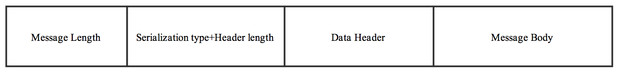 (2) 序列化类型&消息头长度:同样占用一个int类型,第一个字节表示序列化类型,后面三个字节表示消息头长度;