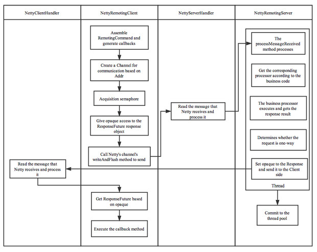 在RocketMQ消息队列中支持通信的方式主要有同步(sync)、异步(async)、单向(oneway) 三种。其中“单向”通信模式相对简单,一般用在发送心跳包场景下,无需关注其Response。这里,主要介绍RocketMQ的异步通信流程。