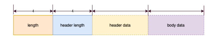 经过序列化后的消息头数据; - 消息主体数据: