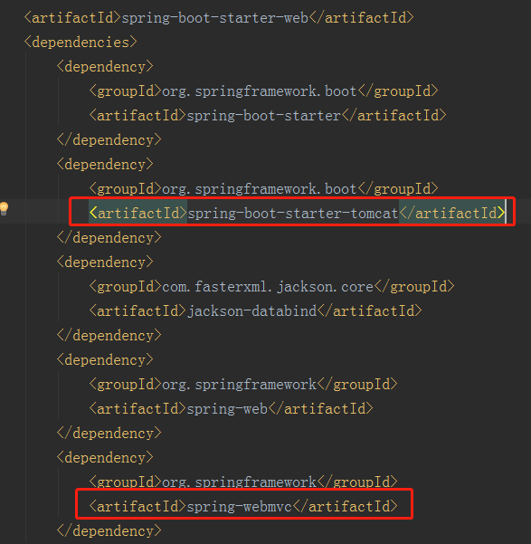 1 2 3 4 <dependency> <groupId>org.springframework.boot</groupId> <artifactId>spring-boot-starter-web</artifactId> </dependency>