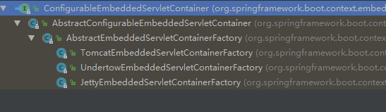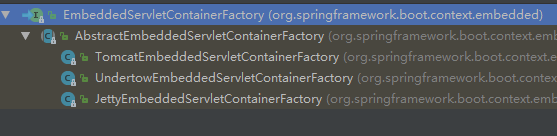 该工厂接口主要有三个实现类,分别对应三种嵌入式Servlet容器的工厂类,如图所示:
