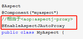 开启AOPaop:aspectj-autoproxy/也可以使用注解的方式,如下,使用@EnableAspectJAutoProxy配置在任何一个@Configratrion或者@Component上