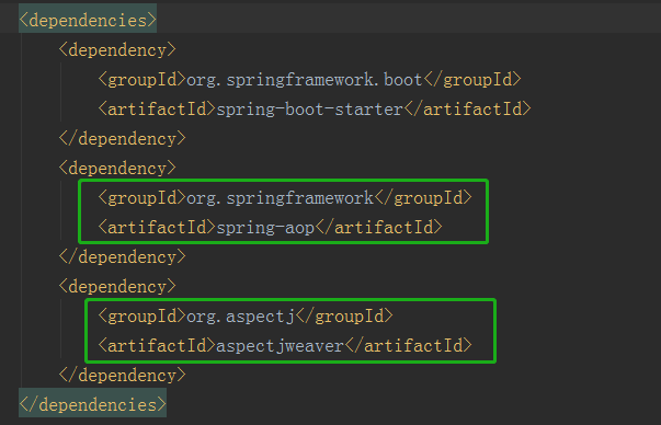 | <dependency> <groupId>org.springframework.boot</groupId> <artifactId>spring-boot-starter-aop</artifactId> </dependency>