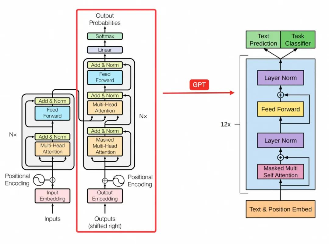 这是 GPT 的完整架构,相对于经典的 Transformer 确实比较简单