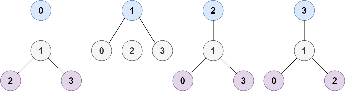 1 | 输入:n = 4, edges = [[1,0],[1,2],[1,3]] |