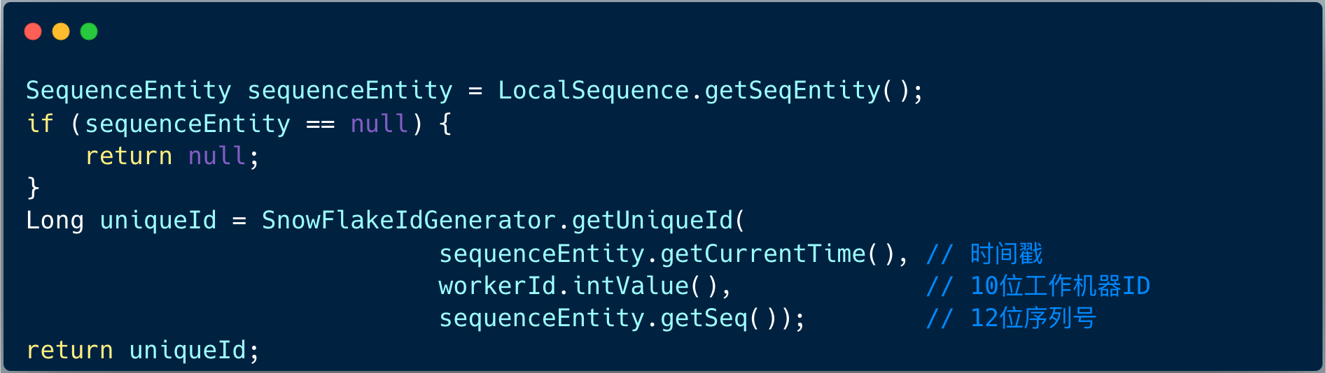因此,我们可以参考美团Leaf 自研一个服务端的 ID 生成器,就能够规避上面的风险,同时对接大规模的应用。