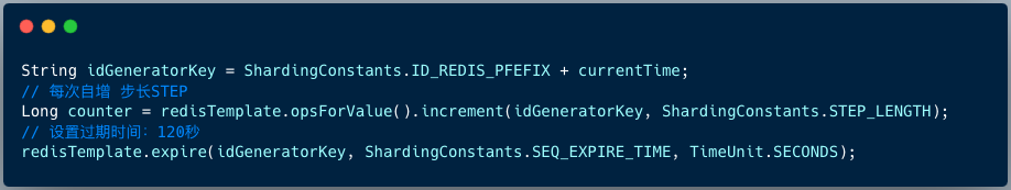 2、调用 redis incr 自增命令,每次自增一个步长,默认是15