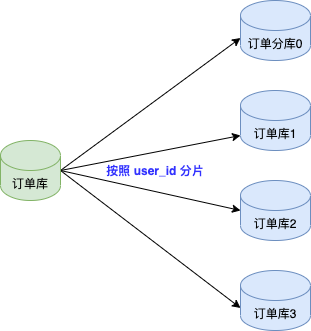 此时订单库没有做任何分库分表,仅仅是单数据库模式,我们需要将单数据库迁移到分库分表的模式。见下图:
