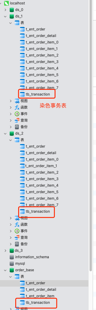 执行完成后,旧订单库实例新增了染色事务表。