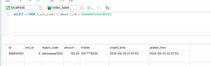 修改一条订单表 t_ent_order 的记录,查看 RocketMQ 控制台即可查询到 Binlog 消息: