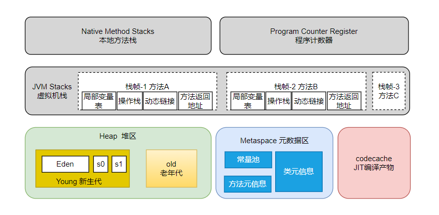 Jvm内存模型是Java虚拟机在运行时为Java进程对内存进行的逻辑划分,将其分为几个部分: