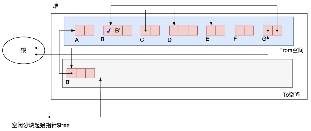 当运行的时候A被加载了,到解析的时候发现被A引用的B还没有被加载,此时就会触发B的类加载,「当B被加载到JVM中后,此时A的符号引用就会被替换为B的内存地址,也就是直接引用」。