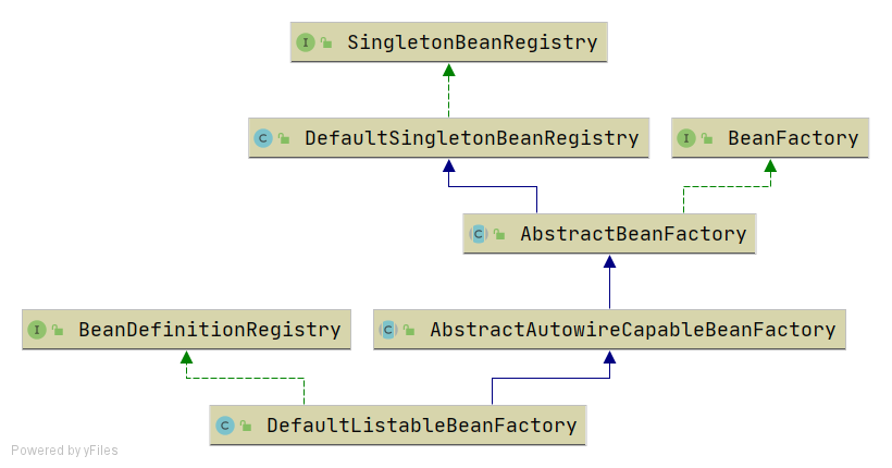 为了方便后面的讲解和功能实现,并且尽量保持和spring中BeanFactory的继承层次一致,对BeanFactory的继承层次稍微做了调整。